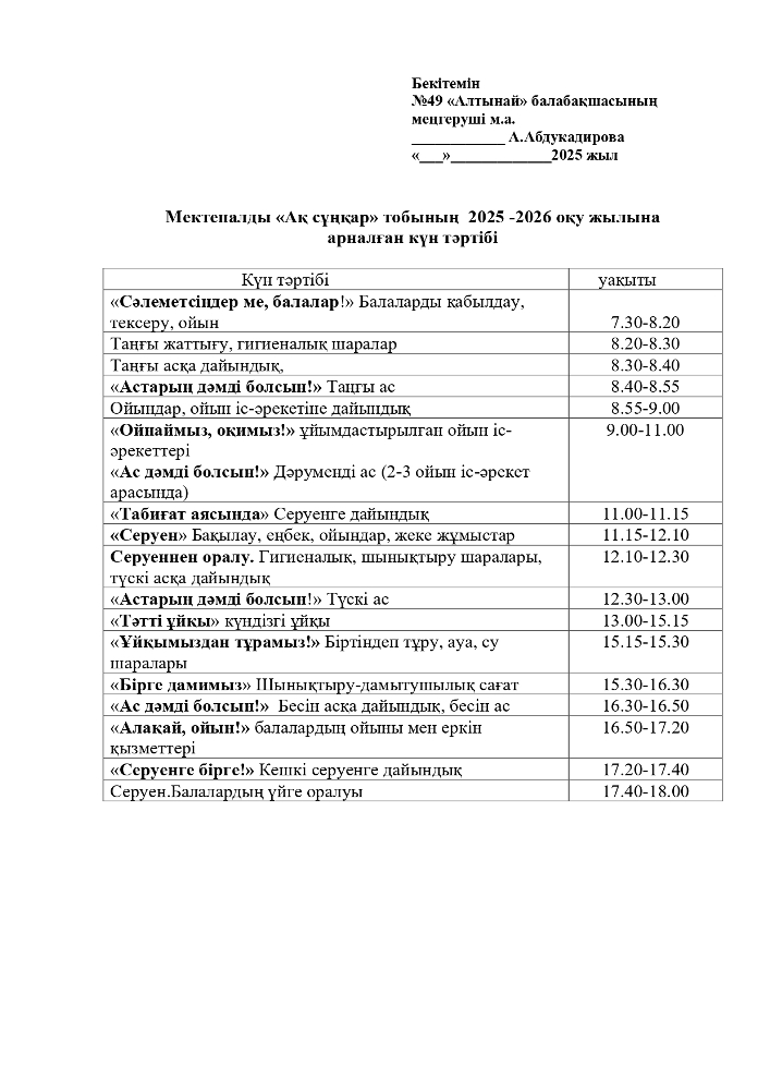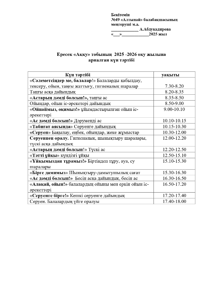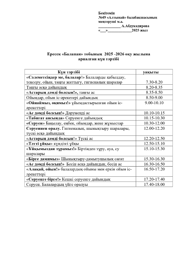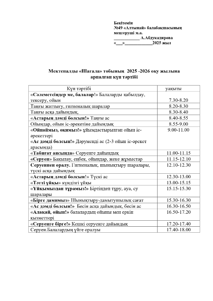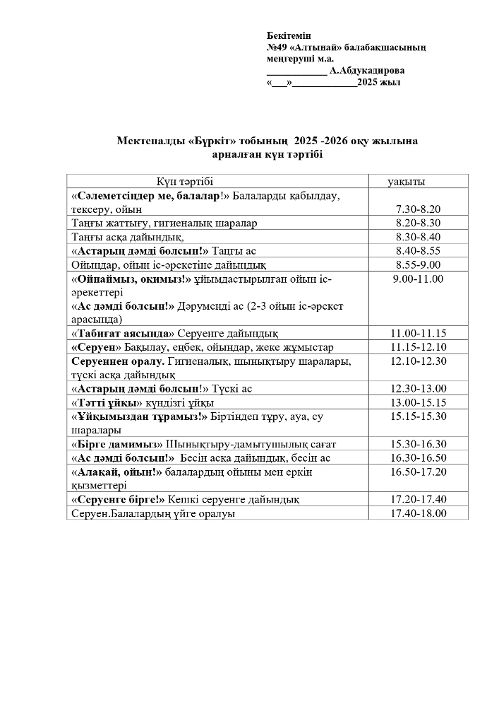 2025-2026 оқу жылана арналған топтарының Күн тәртібі (pdf форматында)