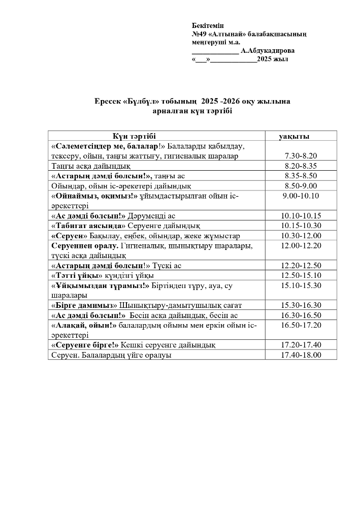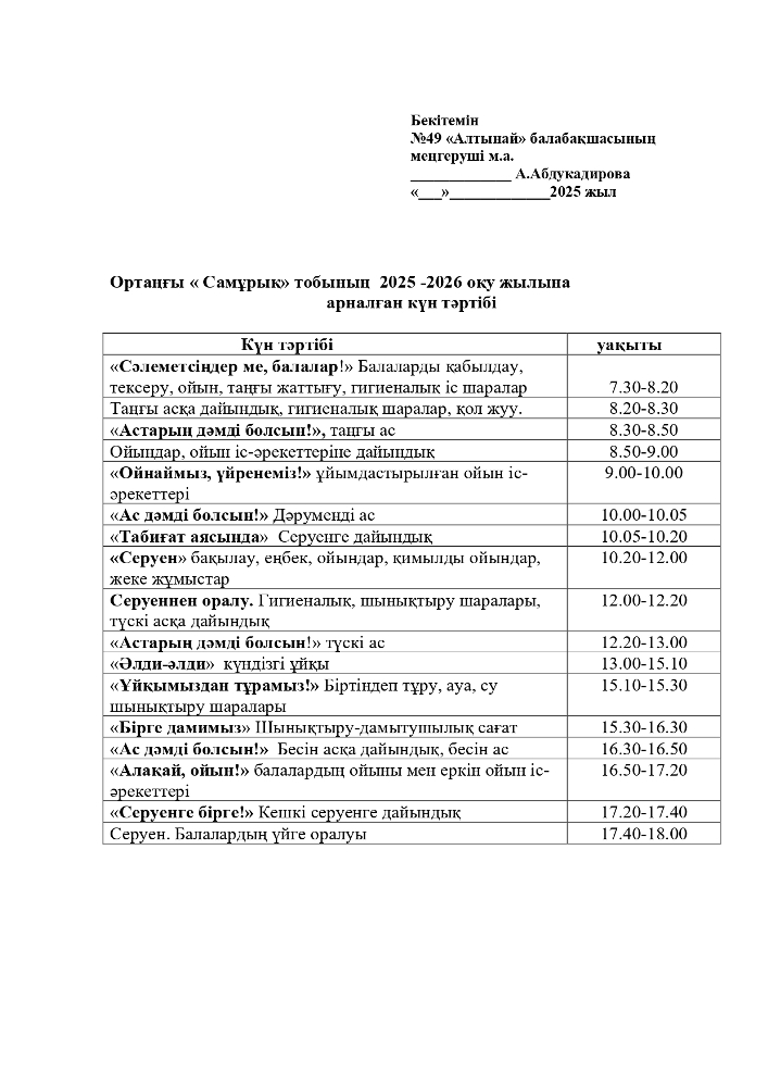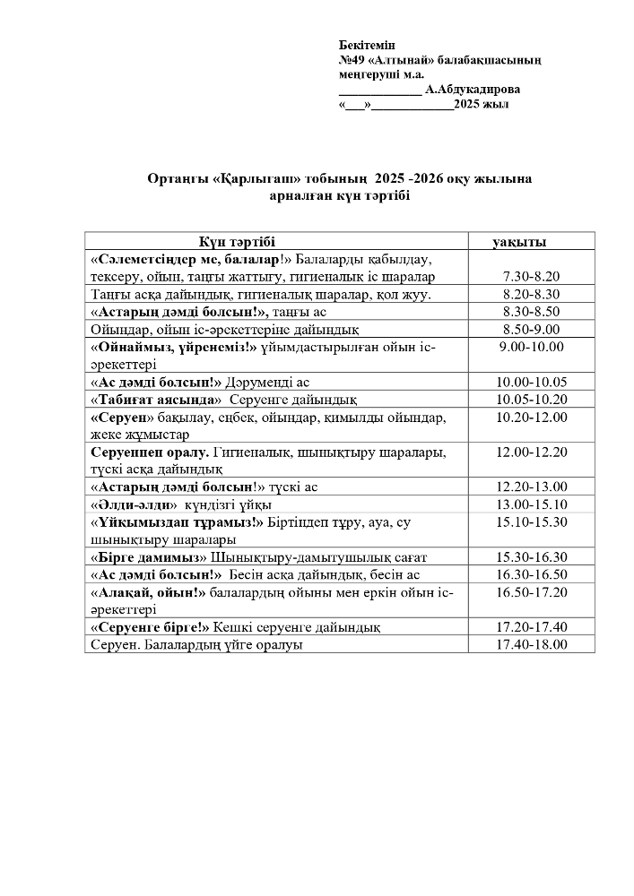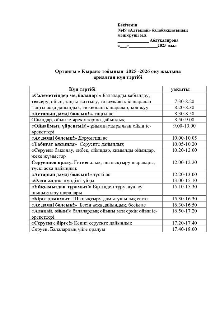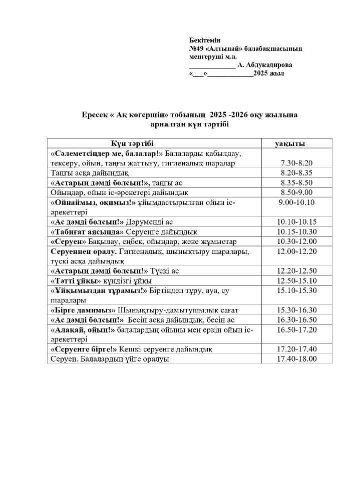 2025-2026 оқу жылана арналған топтарының Күн тәртібі (pdf форматында)
